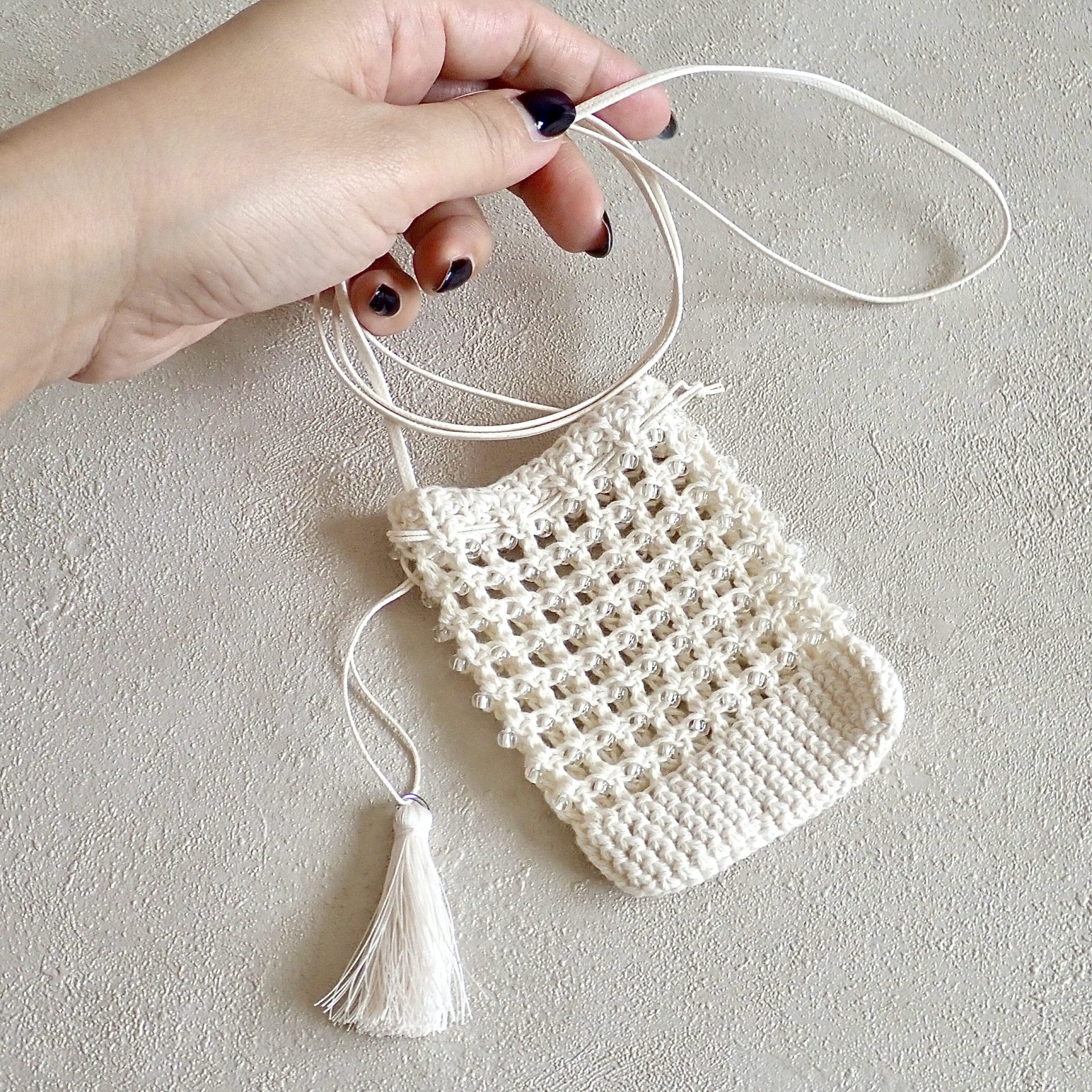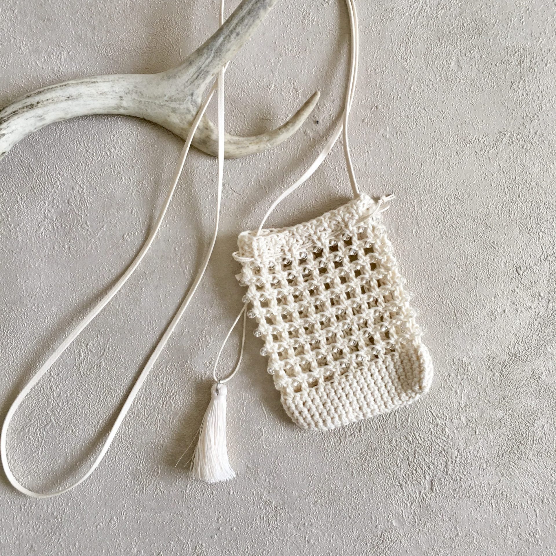 クリアビーズを1つ1つ編み込んで抜け感と軽さが出るよう