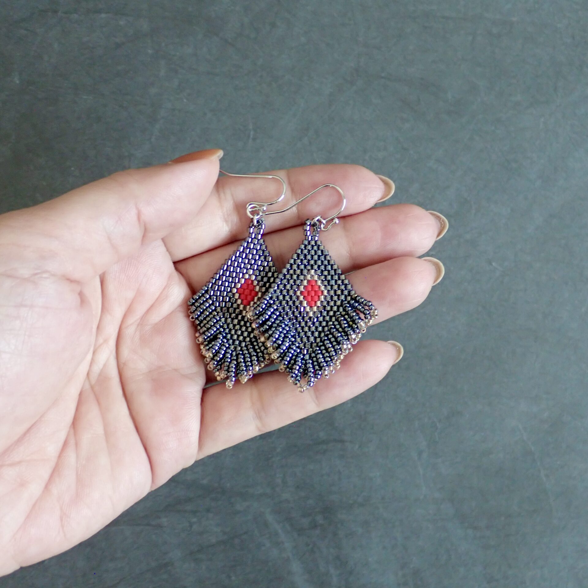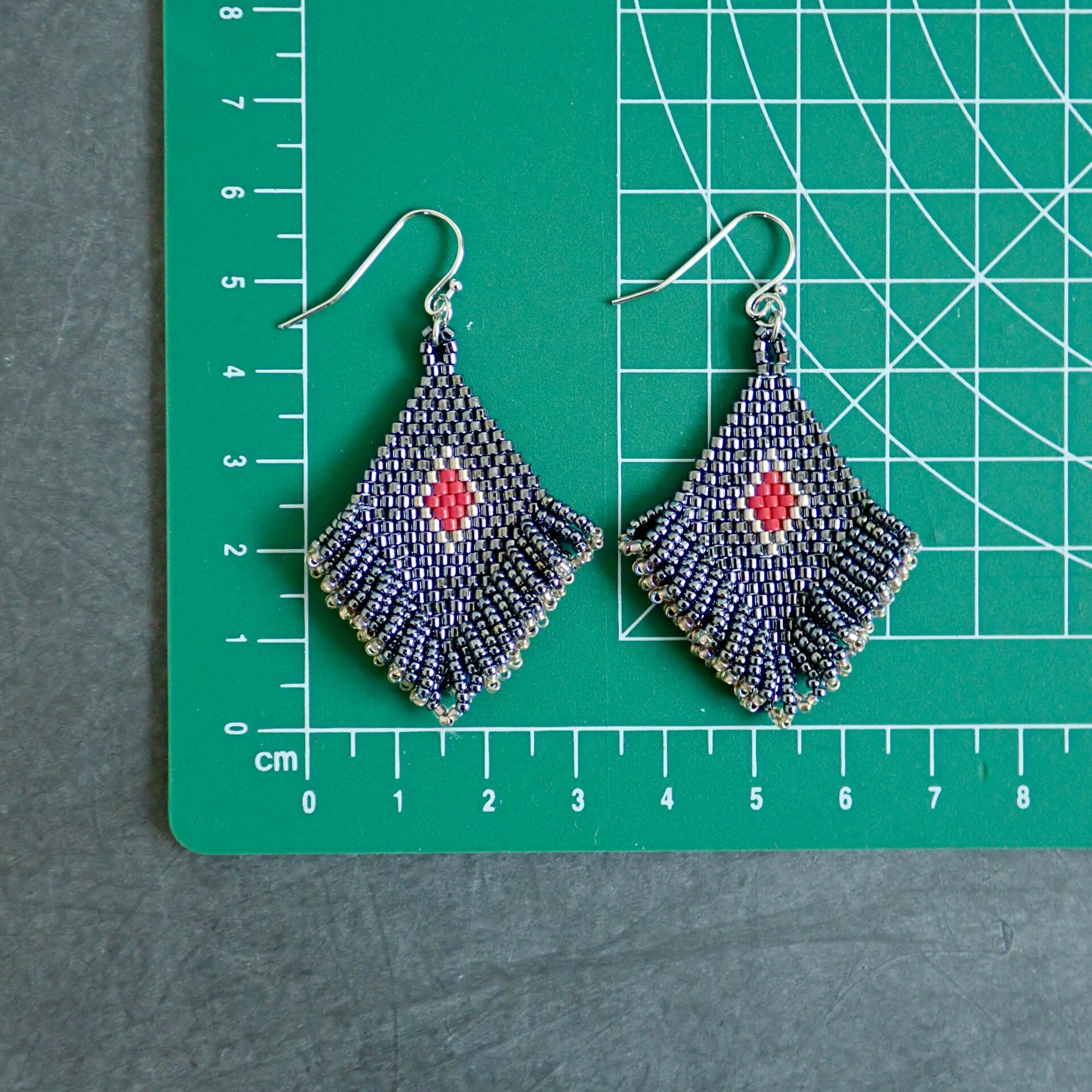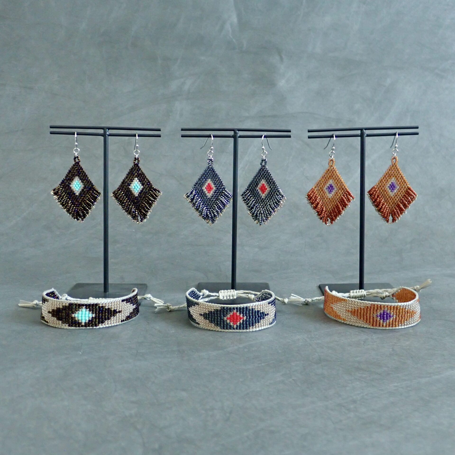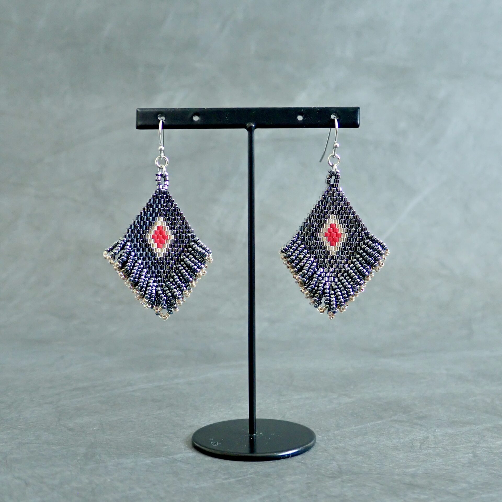 ひし形のモチーフには粒の揃った高品質なビーズを、
