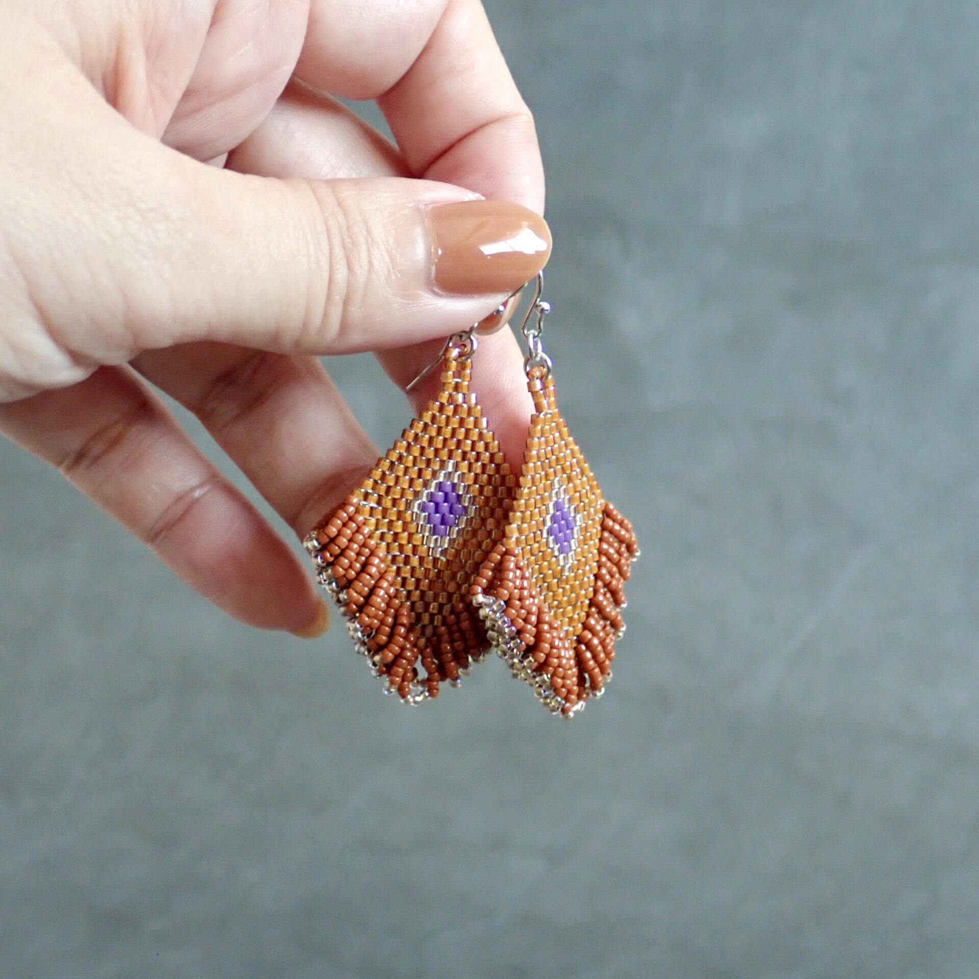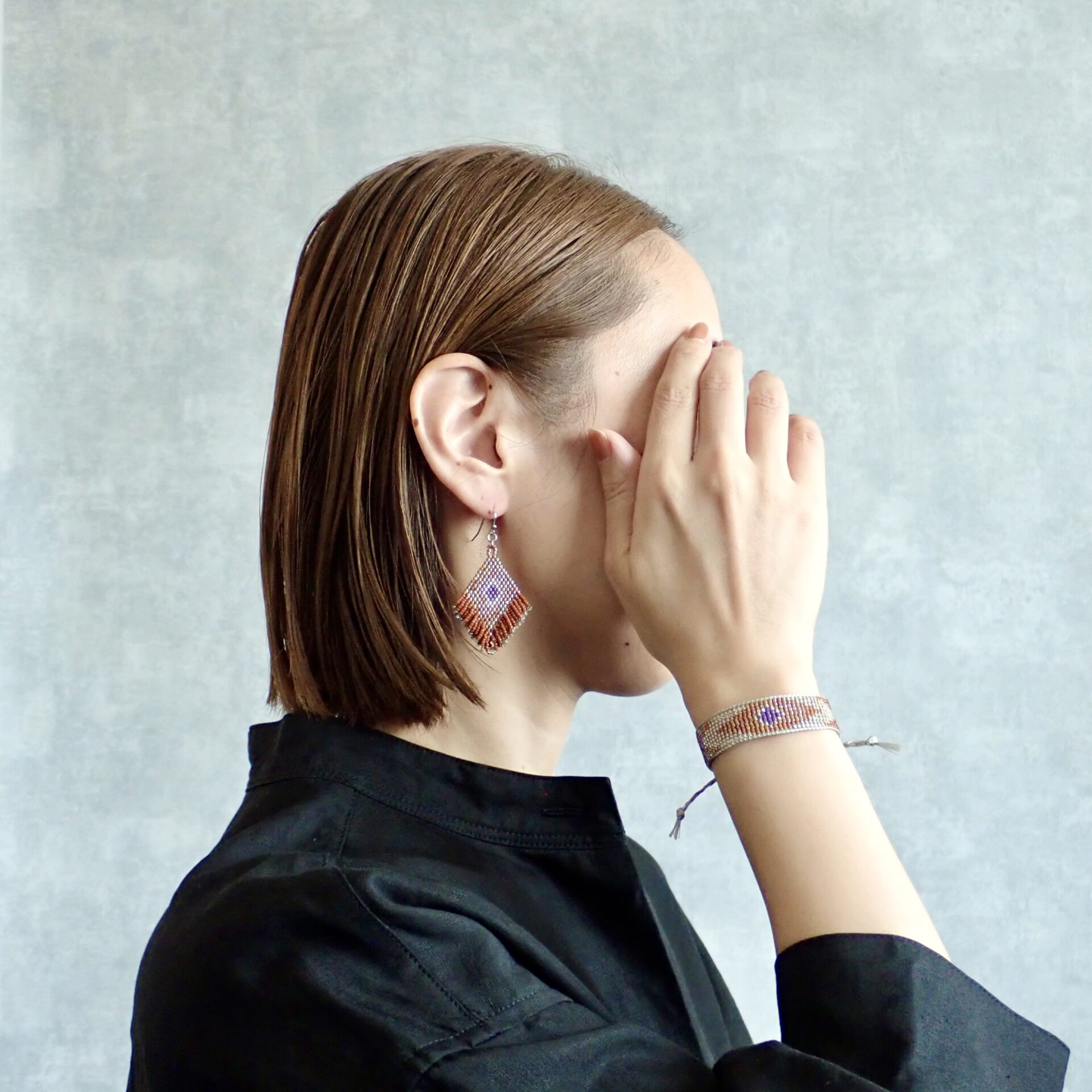 ひし形のモチーフには粒の揃った高品質なビーズを、