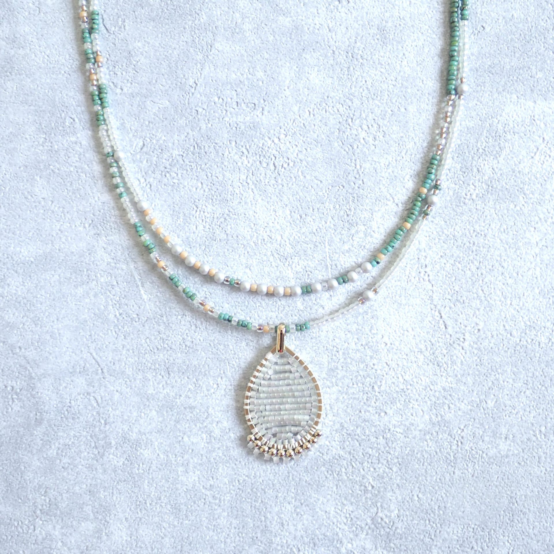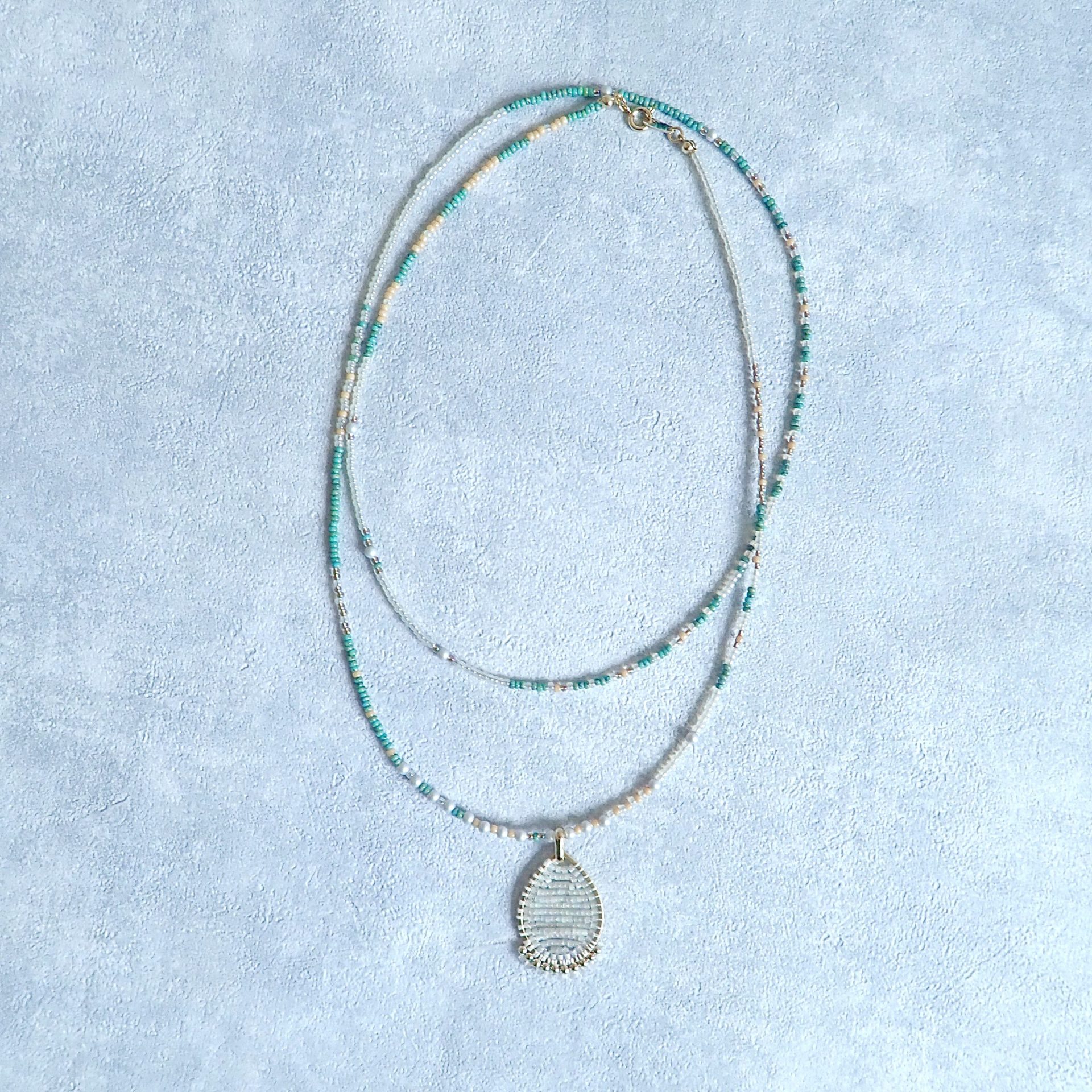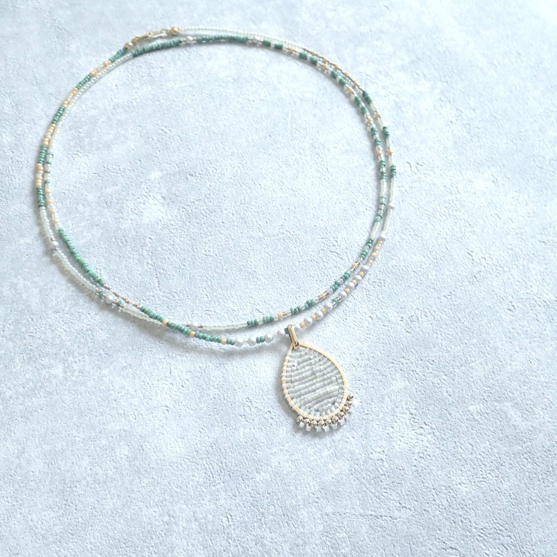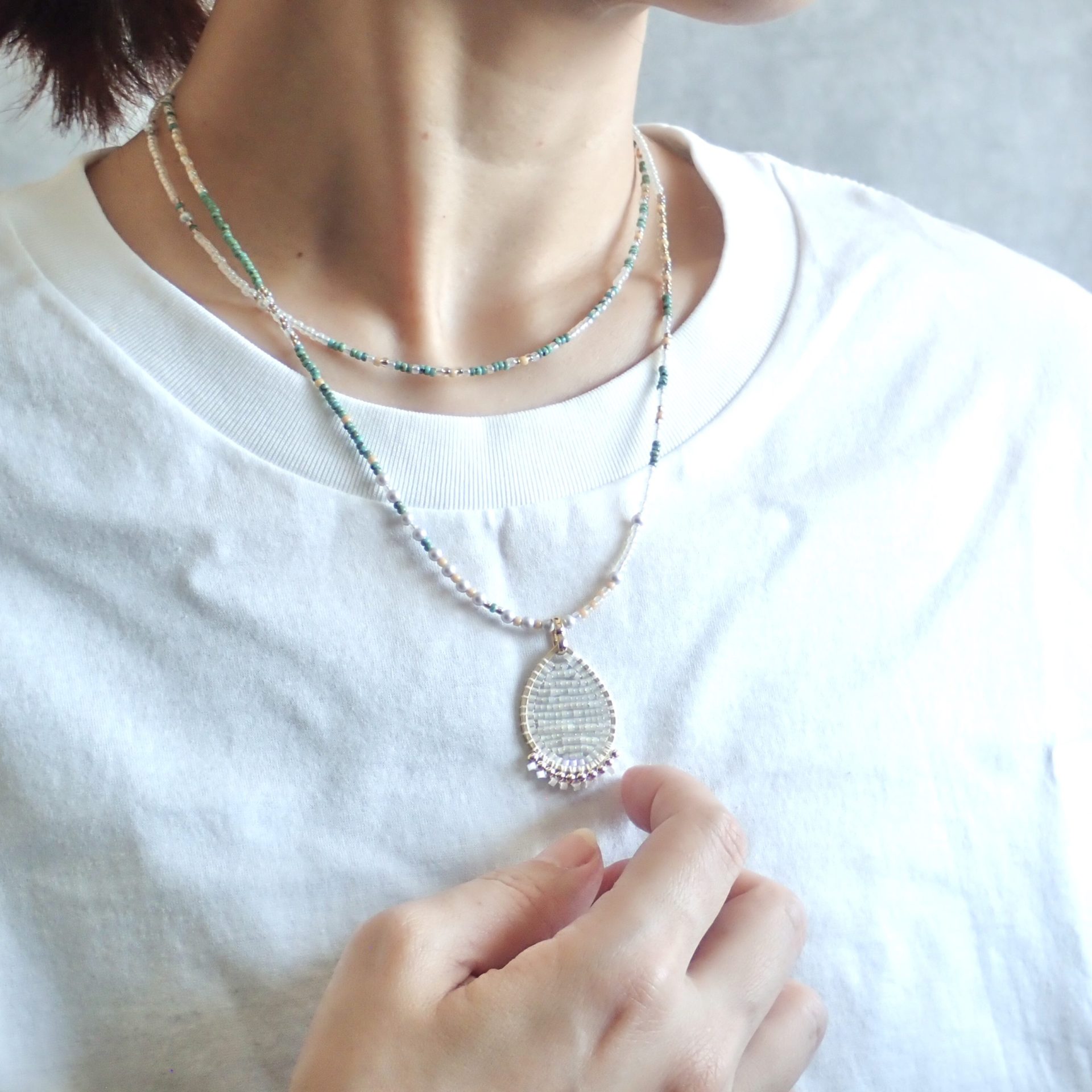 Φ写真の組み合わせ例のゴールドチェーン・ナバホパールネックレス・淡水パールネックレスは非売品です。